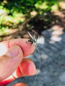 巻き上がりにティペット先に付いていた♯15のパラシュート・メイFlyを私に手渡すと…
